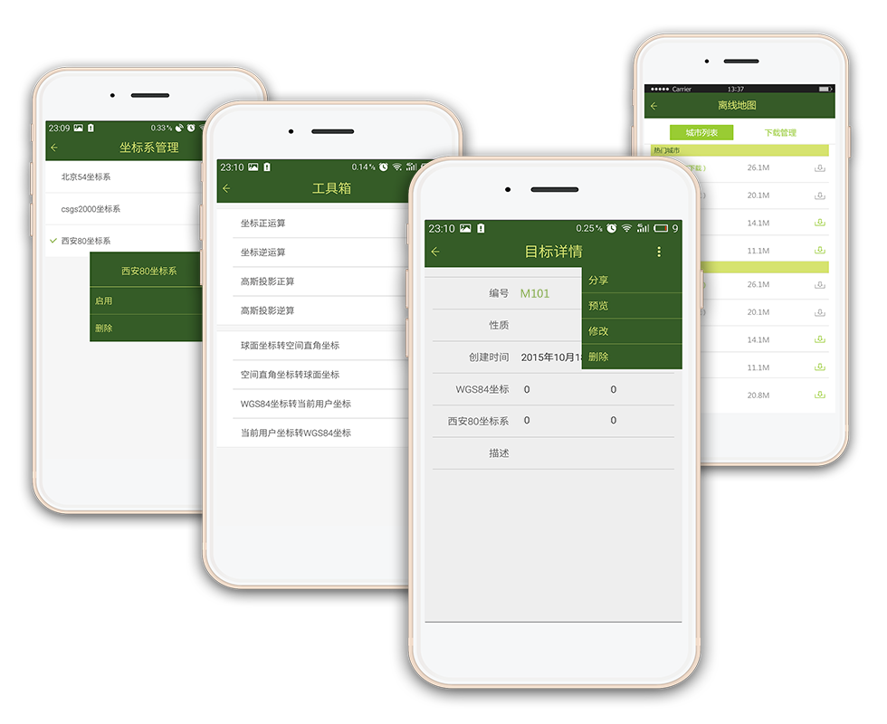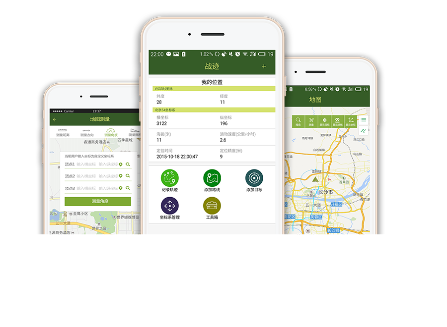 《战迹》是一款基于地理坐标系统的地图社交软件。通过该软件可以实现基于地理坐标系(北京54坐标系、CGCS2000坐标系、西安80坐标系、WGS84坐标、地方坐标系)领域的各种相关应用。